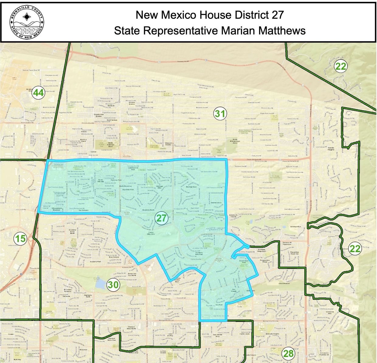 New Mexico House District Map. New Mexico House of Representatives Districts Web Map by ChrisWenker. S. presidential election, as well as other elections to the House. S. representatives from the State of New Mexico, one from all three of the state's congressional districts. United States portal List of United States congressional districts References ^ "Office of the Clerk, U. You can find who represents you in the House of Representatives, Senate, Congress, Public Regulation Commission and Public Education Commission in one of two ways: either enter your address below, select the appropriate body and hit "Search", or select the appropriate body and click the area of the map where you live. New Mexico House of Representatives Districts. Mailing Address: New Mexico Secretary of State. Home Atlas of New Mexico Politics New Mexico State House of Representatives Districts Map Map of New Mexico State House of Representatives Districts Democrat Republican + โ Leaflet