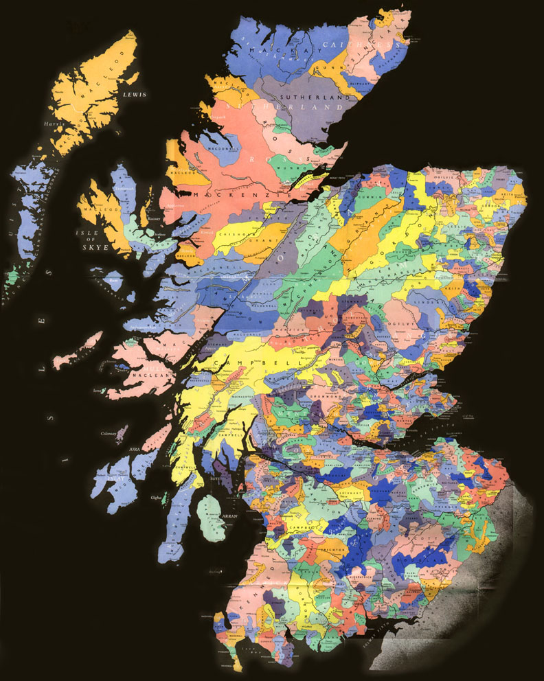 Map Scotland Scottish Clan Names.