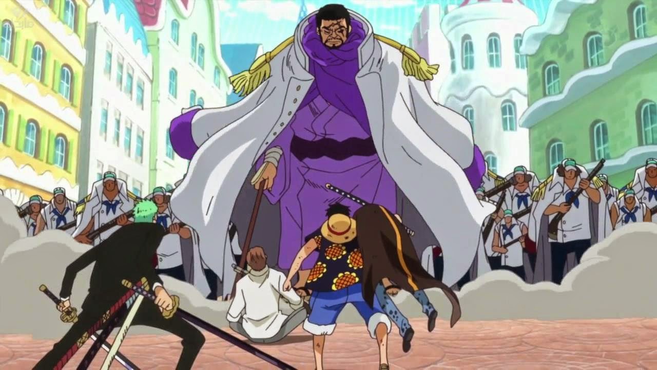Onma One Piece Arabic. It was televised on the local Space Power Channel, which was widely watched throughout the Arab world. He has a round body shape with long wavy black hair and tanned skin. There is censorship in this dub, however it is rather strange and inconsistent. He has bags under his eyes and thick lips. Odama is a firework-making expert and Kodama 's grandfather. He is a supporting antagonist during the Skypiea Arc. Yama is a Birkan and the commander of the Divine Soldiers under Enel. Yama is an obese man with a triple chin.
